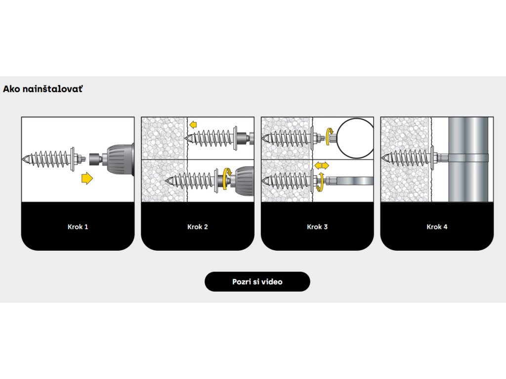 - Montáž pomocou bitu SW17 (hmoždinka), SW13 (šesťhranná matica) alebo TX25 (závitová tyč).