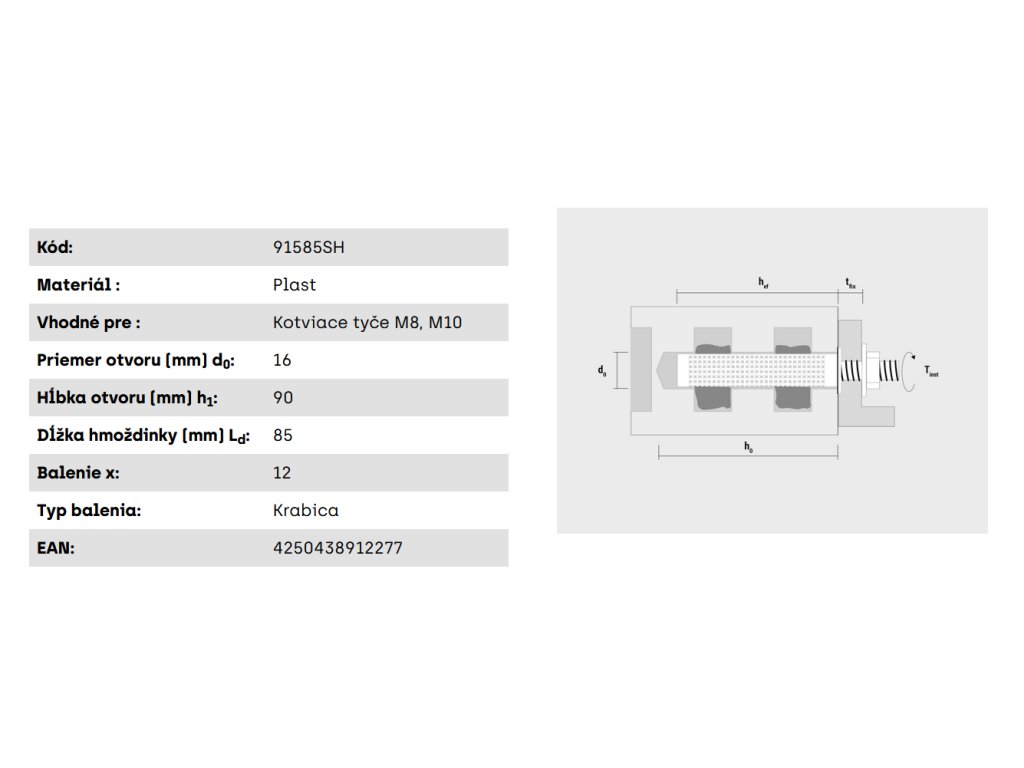 - Sitko SH zabezpečuje optimálne rozloženie a rovnomerné vytvrdnutie chemickej kotvy ResiFIX v dierovanej tehle. Strediaci uzáver na plastovom puzdre SH uľahčuje plnenie chemickej kotvy.