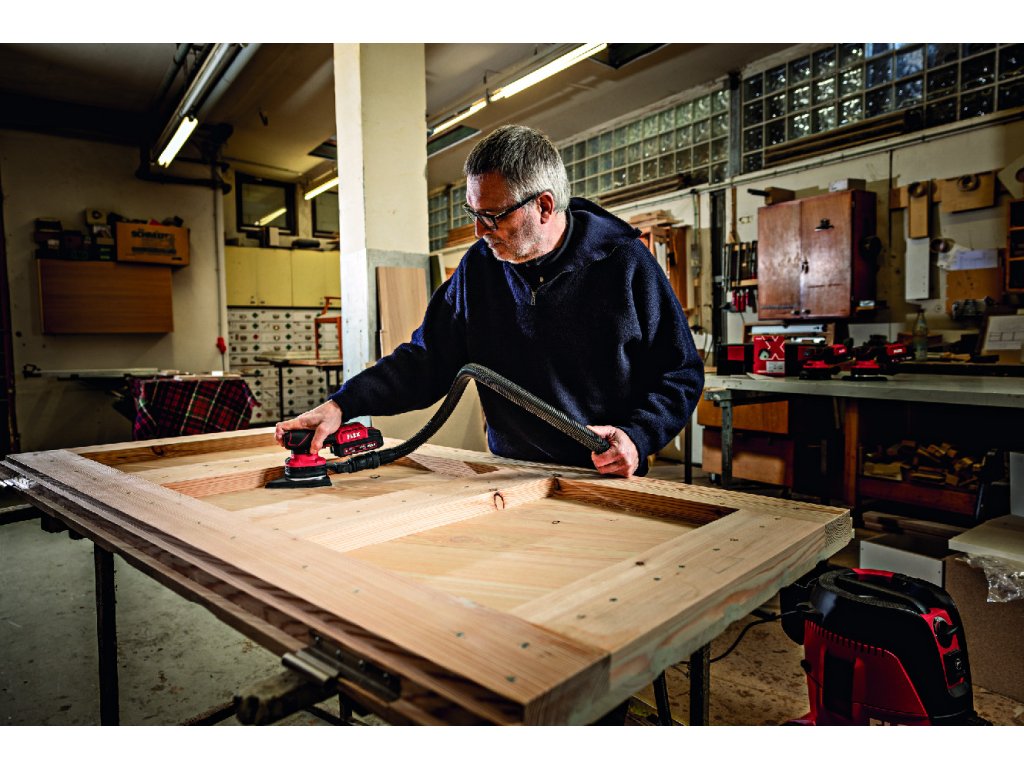 - Sada je ideálna na široké spektrum úloh pri sanácii, modernizácii či úpravách povrchov. Umožňuje jednoducho odstrániť staré vrstvy náterov, vyrovnať nerovnosti a presne vyhladiť drevené povrchy. Vďaka kompaktnému tvaru je perfektná na brúsenie v ťažko prístupných miestach a jej nízke vibrácie zaisťujú pohodlnú prácu bez únavy.