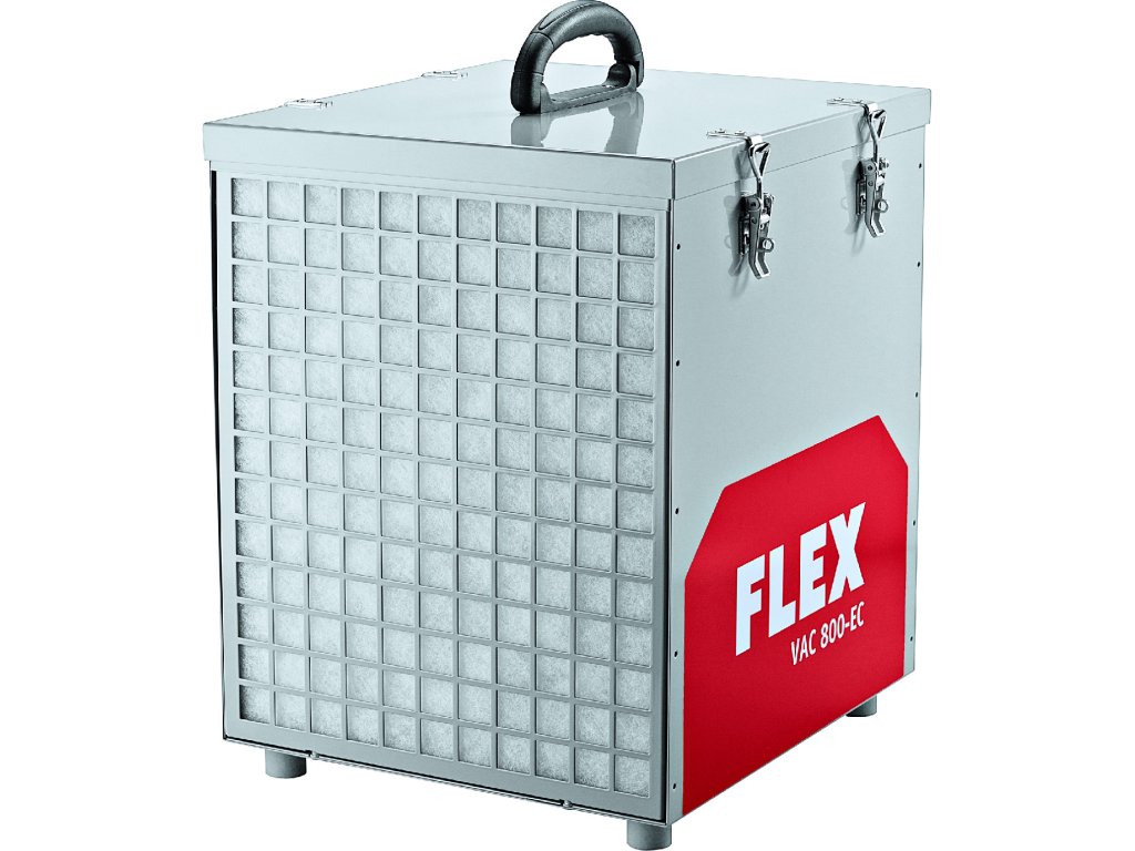 - Profesionálna čistička vzduchu FLEX VAC 800-EC Air Protect 14 Set zabezpečí maximálnu ochranu pred prachom na stavbách, pri rekonštrukciách či brúsení. Vytvára podtlak v pracovnom priestore, čím zabraňuje šíreniu prachu do okolia. Vďaka vysoko účinnému HEPA H14 filtru zachytí až 99,995 % prachových častíc vrátane jemného stavebného prachu, plesní či alergénov.