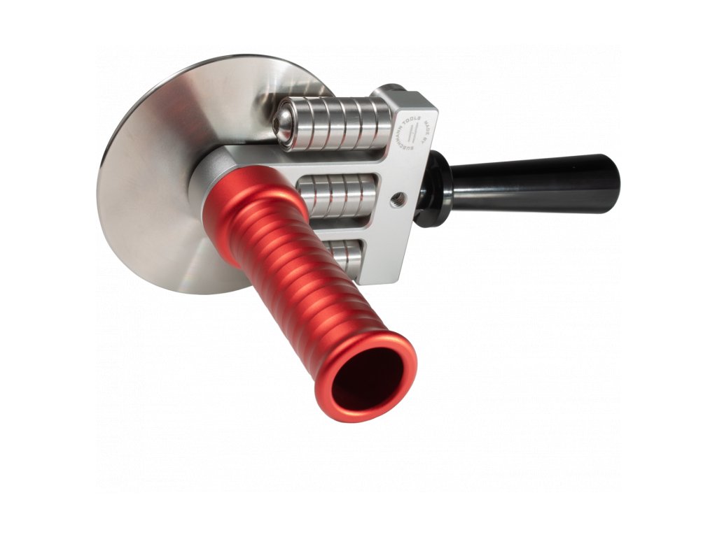 - Dodatočná červená rukoväť, ktorá je súčasťou sady, umožní transformovať Disc Bender na ručný valec.