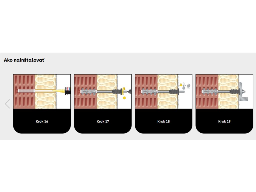 - Upevnenie je vhodné aj v iných podkladoch/základných materiáloch a pre širokú škálu aplikácií, ako sú markízy, prístrešky, francúzske balkóny, satelitné paraboly, klimatizačné jednotky a mnohé ďalšie.