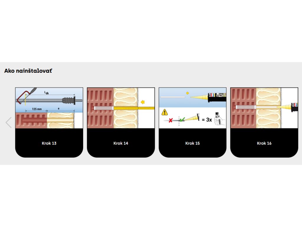 - Upevnenie je vhodné aj v iných podkladoch/základných materiáloch a pre širokú škálu aplikácií, ako sú markízy, prístrešky, francúzske balkóny, satelitné paraboly, klimatizačné jednotky a mnohé ďalšie.