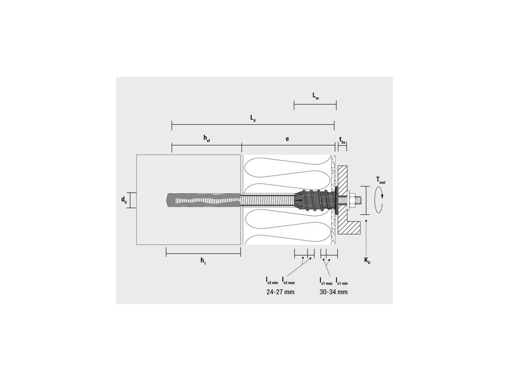 - Vysoká flexibilita použitia: jedna sada pre všetky typy izolácií a hrúbky od 60-300 mm v betóne a 60-250 mm v dierovaných tehlách.