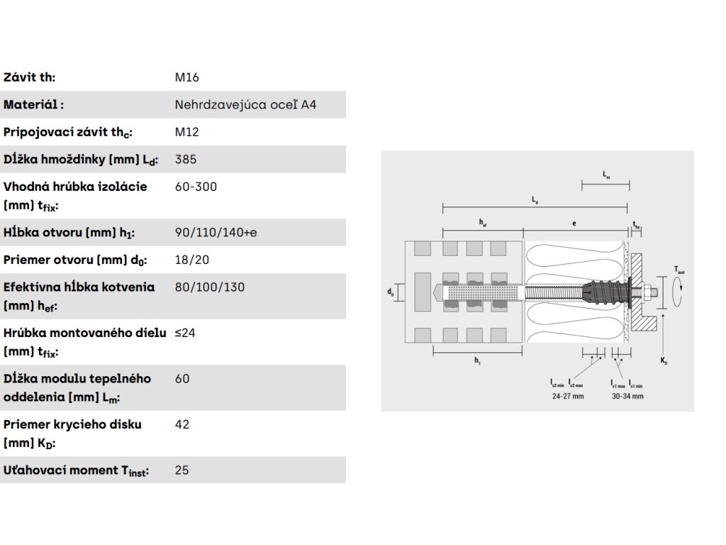- Tento inovatívny výrobok sa rýchlo inštaluje, je odolný voči dažďu, tepelne oddelený, nehrdzavie, má schválenie ETA a je vyrobený v Nemecku! Ideálne riešenie bez tepelných mostov na montáž ťažkých bremien na zateplené fasády ETICS.