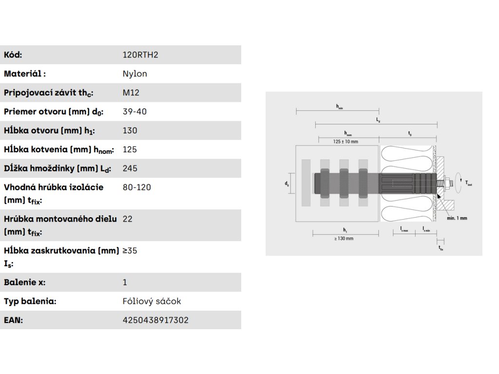 - K dispozícii v troch štandardných dĺžkach 120, 160, 200 pre najbežnejšie hrúbky izolácie.