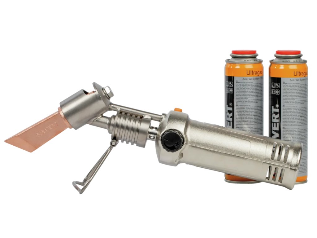 - Praktická a mobilná súprava pre profesionálne zváranie a pájkovanie. Tento systém obsahuje ľahký hliníkový pájkovač s piezo zapaľovaním, ktorý nepotrebuje hadicu ani regulátor – napája sa priamo z 220 g Ultragas kaziet. Je vybavený presným regulátorom plameňa a súčasťou sú kvalitné medené hroty pre precíznu prácu so zváračskými spojmi.
