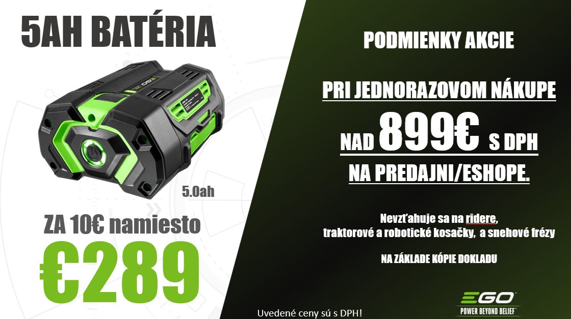 🔥 AKCIA: EGO 5.0 Ah batéria len za 10 €